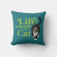 A almofada de dois lados apresenta uma ilustração adorável de gato preto e branco, com um lado a exibir a frase "A vida é melhor com um gato" e o outro a dizer "Gatos Regra a nossa Casa". Esta almofada branca e versátil serve como uma decoração encantadora em qualquer casa de um amante de gatos, mostrando a alegria e influência que os gatos trazem às nossas vidas.