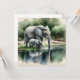 Cartão de vazio elefante. Uma doce ilustração do estilo aquarela de um elefante mama e seu bebendo bebê de uma lagoa com uma relação fofa.