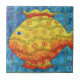 Um azulejo de cerâmica de aquarelas de peixe com padrão colorido. Arte de Julie Nicholls©
