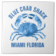 Ilustração de aquarelas de caranguejo azul-bonito com texto personalizável para o nome da sua empresa e da cidade onde você está. Fundo branco personalizável.