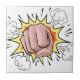 Uma mão do punho dos desenhos animados do pop art com um gráfico da explosão do impacto da banda desenhada