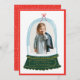 Cartão de férias doce com seu cumprimento, assinatura e foto dentro de uma ilustração de globo de neve.