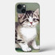 capas de iphone com um gatinho listrado. As listras pretas atravessam o pelo de um gatinho branco. Uma flor branca decora uma cesta num campo de erva. Um presente fantástico para amantes de gatos e entusiastas de arte vitorianos!