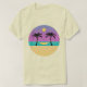 Este gráfico de camisetas mostra um assombroso pôr do sol havaiano: o sol se põe abaixo de um céu colorido, palmeiras, e ondas suaves beijam a costa arenosa. É um retrato do paraíso na sua camisa.