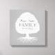 Ilustração personalizada da canvas de árvore da família. Decoração elegante para sala de estar ou quarto. Na moda de tipografia modelo para apelido e data estabelecida. Árvore clássica com ilustração de raízes. Boa ideia de presente decorativo para chá de fraldas, festa de reunião, genealogista, aniversário, nova casa, aquecimento doméstico etc. Tema genealógico. Cinza / cinza ou cor de fundo personalizada. Esposo surpresa, esposa, pai, avós ou outros parentes com esta arte singular de muro.