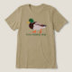Adicione sua própria mensagem para criar camisetas gráficas personalizadas que sejam perfeitas para amantes de pássaros. Adicione um nome, um nome de lugar ou seu próprio slogan divertido para criar uma t-shirt que é você. Esta camisa apresenta um estilo realista de ilustração de um pato-real macho com o seu texto abaixo na coordenação das letras verdes.