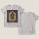 Ilustração vetorial de camiseta, design centrado de um bebê móvel minimalista com pequenas silhuetas de super-heróis, incentivando os pequenos a sonhar grande. ilustração vetorial simplista e centralizada, cor de fundo sólido.