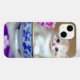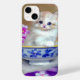 capas de iphone com um gatinho branco fofo! O gatinho de olhos azuis fica em uma tigela azul com flores cor-de-rosa. Um cobertor com flor púrpura é cortado na frente. Um presente maravilhoso para amantes de gatos e entusiastas de arte vitorianos!