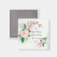 Um imã de escritura inspiracional retrata um elegante design floral pintado com rosas brancas e cor-de-rosa e verde em um fundo com textura de óleo. Apresenta Bíblia Verse 1 Corinthians 13:7-8, "Amor... espera que todas as coisas, resista a todas as coisas, o amor nunca falha."