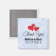 Um ímã de casamento - que diz obrigado ou pode ser personalizado para dizer salve a data, ou bem-vindo etc... Desenhado com uma ilustração de 2 corações de papel unidos - vermelhos com uma borda branca. Definido em um elegante fundo de mármore azul gélido.