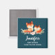 Magnet com desenho de 2 raposas vermelhas. Um de pé no outro deitado. Desenhado com aquarela.
