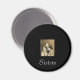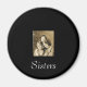 Este maravilhoso ímã tem três jovens agrupadas para uma fotografia. Perfeito como um ímã de irmãs.