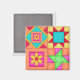 Mostre o seu amor por colchar com este belo ímã colorido feito com a original arte colchada de 4 blocos. Esta arte em forma de colcha apresenta blocos de colcha favoritos e blocos únicos criados por Phyllis Dobbs em cores dinâmicas e vibrantes de laranja, amarelo, rosa, turquesa e verde limão para uma bela paleta de cores. Totalmente personalizável. A arte quilt é uma arte original da designer de tecidos e mantas Phyllis Dobbs e está em uma coleção de tecidos da Quilting Treasures. Esta arte está disponível em outros produtos e em vários planos coloridos. Há mais produtos disponíveis na loja Business da Phyllis com Flair.