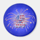 Fogos de artifício ouro com estrelas a rebentarem por trás da bandeira dos EUA preencheram a carta de 4 de julho para um imã que é um presente divertido para o Dia da Independência dos EUA. Você também pode gostar de cartas e presentes com este brilhante design de 4 de julho disponível na minha loja. Design original do Anura Design Studio.