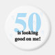 T-shirts de 50 anos, canecas, cartões, botões, e mais, com texto que diz "50 está indo bem em mim"!
