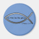 O padrão, 21/4", ímã redondo com cor azul do fundo reflete aquele. O Ichthys/Ichthus (esboço dos peixes) é os cristãos adiantados do símbolo secreto usados para referir o Jesus Cristo.