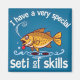 Dive into the whimsical world of fishing with this fun and colorful illustration! Featuring a cheerful fish demonstrating its "SETI of skills," this design combines humor with the art of angling.