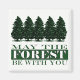 Um design gráfico de floresta com o texto "Que a floresta esteja contigo" num ímã.