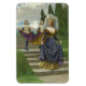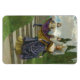 Este design apresenta uma pintura do artista britânico Pre-Raphaelite John Collier (1850-1934). Mostra uma senhora rica vestindo um vestido elegante num cenário medieval. Talvez ela seja uma princesa ou uma nobre. O longo trem de tecido ligado ao vestido da senhora está sendo transportado por dois garotos jovens, que também fazem parte do tribunal aristocrático. A senhora está caminhando por alguns passos de pedra de uma forma graciosa e refinada. Há gramados manicurados em ambos os lados dela. Há também algumas árvores altas de bezerro. O céu é azul com algumas nuvens brancas, e há montanhas à distância. A fantasia que a senhora está vestindo é azul e ouro, e ela tem uma morada elaborada num estilo que estava na moda na Idade Média Europeia. O vestido da senhora é azul escuro com um padrão de pulgas-de-lis ouro. O trabalho artístico original foi pintado por John Collier em 1920.