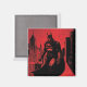 A ilustração do estilo dos quadrinhos de Batman em cima de um gárgula em Gotham City.