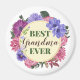 Uma bela coroa floral com texto correspondente que você pode personalizar. Várias flores com tons de rosa e roxo.