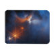 A região central da nuvem molecular escura Chamaeleon I, a 630 anos-luz daqui. Capturada pela câmera Near-Infrared (NIRCam) no telescópio espacial James Webb. A nuvem fria e sábia (azul, centro) é iluminada no infravermelho pelo brilho da jovem protoestrela Ced 110 IRS 4 (laranja, superior esquerda). A luz de numerosas estrelas de fundo, vistas como pontos laranja atrás da nuvem, pode ser usada para detectar gelos na nuvem, que absorvem a luz estelar que os atravessa.