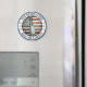 Design gráfico com a bandeira americana, a Estátua da Liberdade e o texto "Dê-me Liberdade".