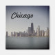 A silhueta de Chicago projetada em tumbler térmico e com o texto Chicago. Filtrado com nevoa