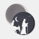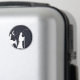design de Natal único com um selo branco de Maria e José na viagem a Belém vista à distância.