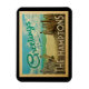 Esta saudação de Hamptons vintage postcard design apresenta uma praia arenosa com uma bela água turquesa oceânica e acima do mar, um céu azul com nuvens brancas onduladas. No estilo viagens vintage.