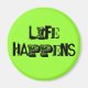 "A vida acontece". A cor de fundo pode ser personalizada.