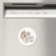 Um ímã de aspas inspiracional retrata um simples design de arte de linha floral com duas flores em formas de tons de terra. Ela apresenta uma mensagem encorajadora, "A vida é frágil com a oração."_