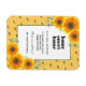 Um fundo amarelo decorado com girassóis de cor aquática rústica e bisnagas felizes sorrindo. Com o texto: Home Sweet Home. Personalize e adicione seu novo endereço e nome.