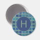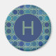 Abstract blue circle pattern with different shades of blue on monogrammed magnet.