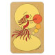 Este trabalho de arte vibrante de Richard H. Fay apresenta uma representação abstrato de uma dançarina que trai a luz fantástica entre círculos amarelo e laranja brilhantes.