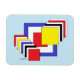 Este abstrato geométrico de Richard H. Fay apresenta uma matriz de quadrados nas cores primárias de vermelho, azul e amarelo, bem como preto e branco.