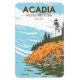 Acadia vector artwork design. Acadia National Park is primarily on Maine's Mount Desert Island. Its landscape is marked by woodland, rocky beaches and glacier-scoured granite peaks such as Cadillac Mountain.
