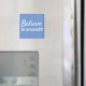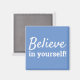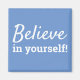 Citação motivacional e inspiradora, "Acredite em si mesmo!". Um ímã com palavras de sabedoria para viver. O design tem fonte branca em fundo azul que pode ser facilmente personalizado na seção de ferramentas de design do Zazzle.