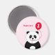Personalize este ímã para a criança de aniversário adicionando seu nome - digite apenas na caixa. Este panda fofo tem um balão de primeiro aniversario, em vermelho para combinar o nome, tudo num fundo rosa pálido.