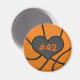 Este ímã é excelente para o jogador de basquete ou para mostrar suporte para um! Design apresenta uma bola de basquete laranja com um coração negro e um quarto para os seus jogadores de basquete personalizados!