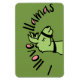 Imagem esplêndida em um ímã de geladeira de uma lhama e as palavras "I Llove Lhamas."