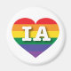 Este ímã apresenta um coração com um design do orgulho arco-íris e as letras maiúsculas, brancas e negrito IA, a abreviação oficial de Iowa, o estado dos olhos do falcão. Mostre suas cores verdadeiras, apoie a igualdade do casamento e comemore a orgulho gay.