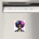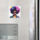 O ímã apresenta um trabalho de arte de aquarela vibrante e multicolorido de uma linda menina negra, com uma grande cor revestida de cores fluorescentes do arco-íris. A beleza rica em melanina está vestindo óculos de sol e batom rosa. Pequeno efeito de decapagem e gotejamento nesta arte colorida estrelando uma mulher de pele castanha da diáspora africana.