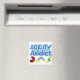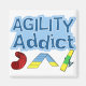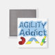 Presente perfeito para viciados em agilidade! Impressão é azul-negrito, e abaixo estão três obstáculos de agilidade - um túnel vermelho, uma estrutura azul e uma serra verde. Magneta divertida para ficar na geladeira.