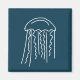 Arte de água-viva fofa com contorno branco em fundo azul-marinho. Essa arte moderna de tema marinho e vida aquática é fofa e descolada. Você deseja água-viva.