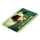 Um ímã fotográfico personalizável de um belo geleia tricolor que se encontra na cama de seu ser humano.