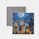 Libere o espírito assustador com esta design sombria do Dia das Bruxas apresentando um bando de cachorros sob um céu escuro e iluminado, cercado por morcegos voadores e abóboras brilhantes. Perfeito para aqueles que amam um toque de diversão terrível com seus amigos peludos!