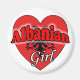 Leuke magneet encontrou een hart afgebeeld encontrou de Albanese vlag erop. Op de tekst staat: "A menina albanesa De achtergrond está em de kleur com inteligência. Leuk om the geven als cadeau of voor jezelf om the laten zien dat je trots bent om Albanes te zijn. kleuren: zwart en rood.