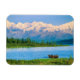 Wonder Lake, alce macho se alimenta de vegetação, montanhas do Alasca ao fundo, Parque Nacional Denali, Alasca