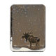 Trabalho de arte de Vintage John Bauer mostrando um alce na neve entre duas árvores.